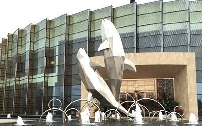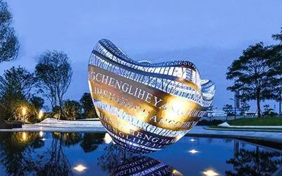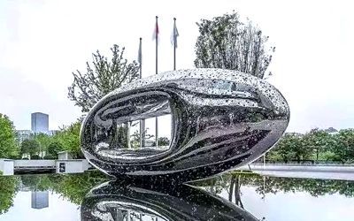 酒店不銹鋼雕塑以美為主,一般為裝飾性美陳景觀雕塑,常見(jiàn)于酒店大門(mén)、大堂、園林。包括但不限于水景景觀類(lèi),如圓環(huán)、噴泉、鏤空球;裝飾美陳類(lèi),如蓮花、翅膀、鵝卵石、水滴等。
