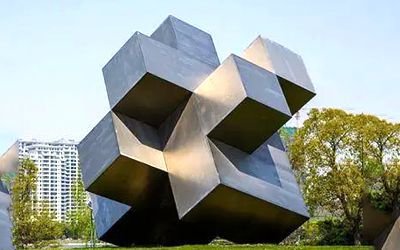因不銹鋼塑形相對(duì)困難,抽象是不銹鋼雕塑最主要的一種表現(xiàn)形式,常見(jiàn)的抽象形式有:幾何塊面(切面)、編織網(wǎng)格、剪影等。